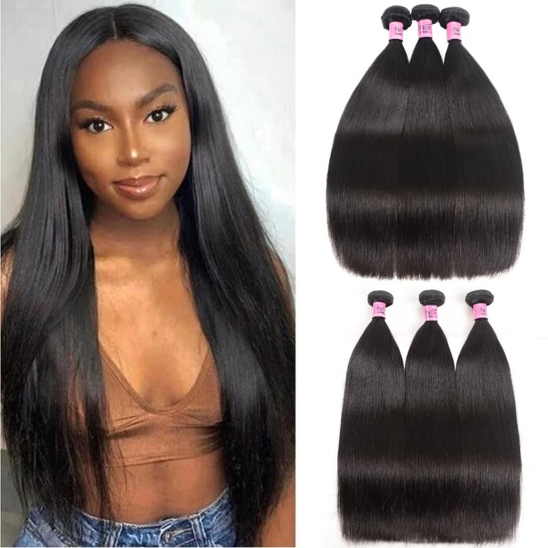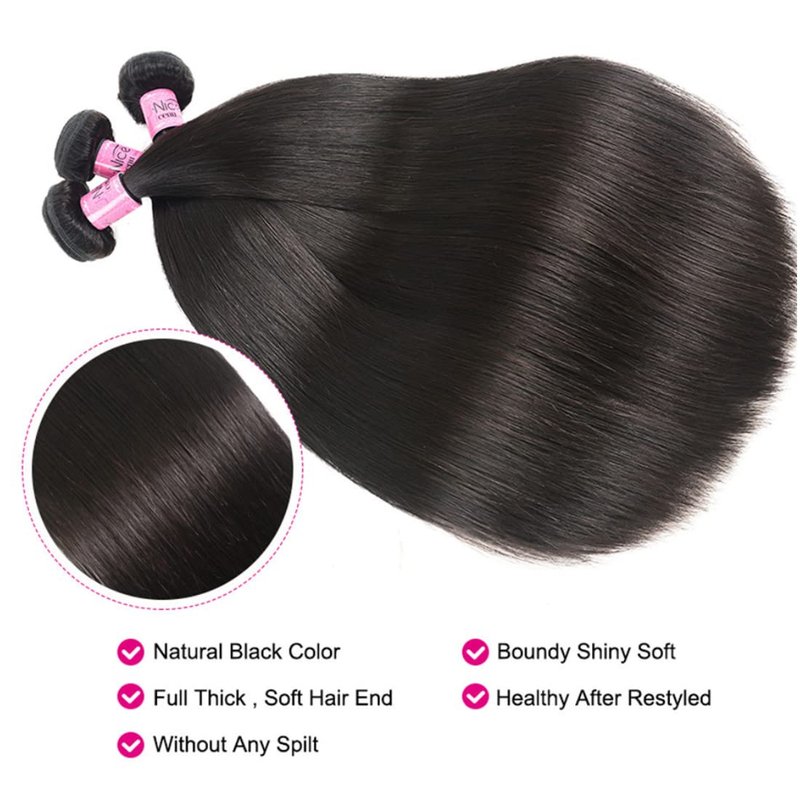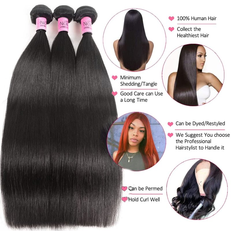 UNice Hair Brazilian Straight Hair 3 Bundles Hair Weft 100% Unprocessed Virgin Human Hair Extensions Weave Natural Color (12 14 16inch)