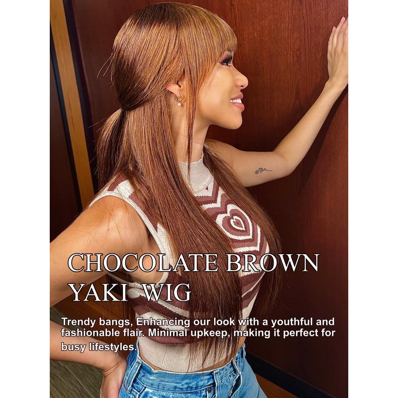 · Chocolate Brown Yaki Straight Human Hair Wig