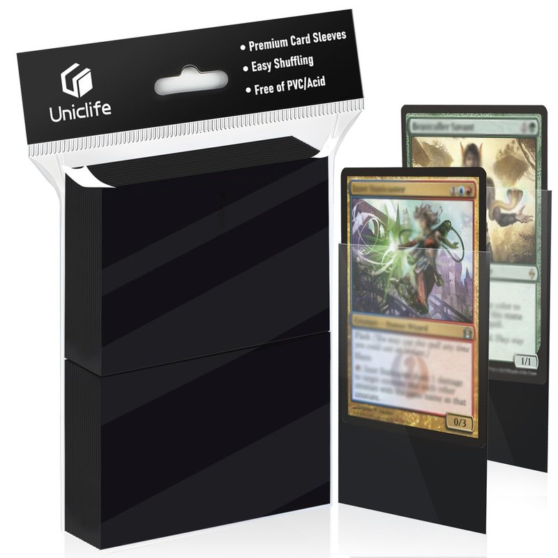 Uniclife 100 Counts Black MTG Card Sleeves Matte Back Trading Card Sleeves Baseball Card Sleeves Standard Sized Deck Card Protectors for Sports Cards Football Cards Game Cards Yugioh Cards, 66 x 91 mm