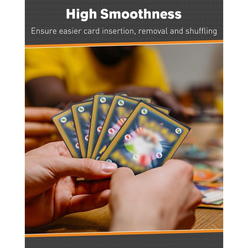 - Double-sided Design: Featuring an ultra-clear front, the trading card sleeves showcase your collection with exceptional clarity and visual effects. The black matte back embraces a soft, fine texture which ensures a more comfortable and secure grip