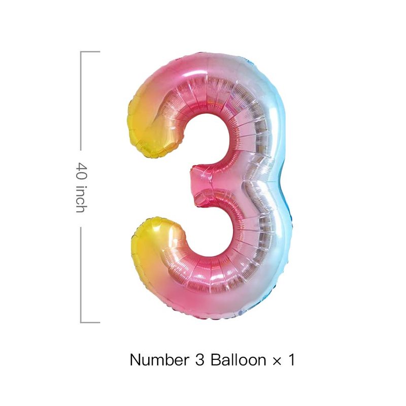 - Unicorn Foil Balloon Set: Iridescent Unicorn Balloon x 2, Pastel Rainbow Balloon x1, Pink Star Balloon x 2, Gradient 40inch Number 3 Balloon x 1