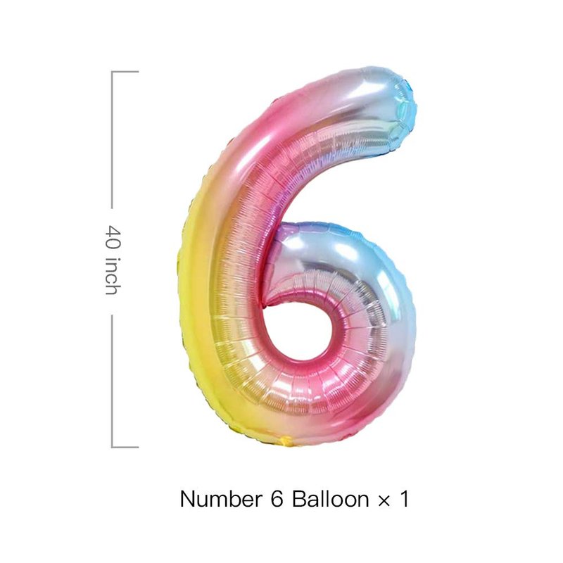 - Unicorn Foil Balloon Set: Iridescent Unicorn Balloon x 2, Pastel Rainbow Balloon x1, Pink Star Balloon x 2, Gradient 40inch Number 6 Balloon x 1