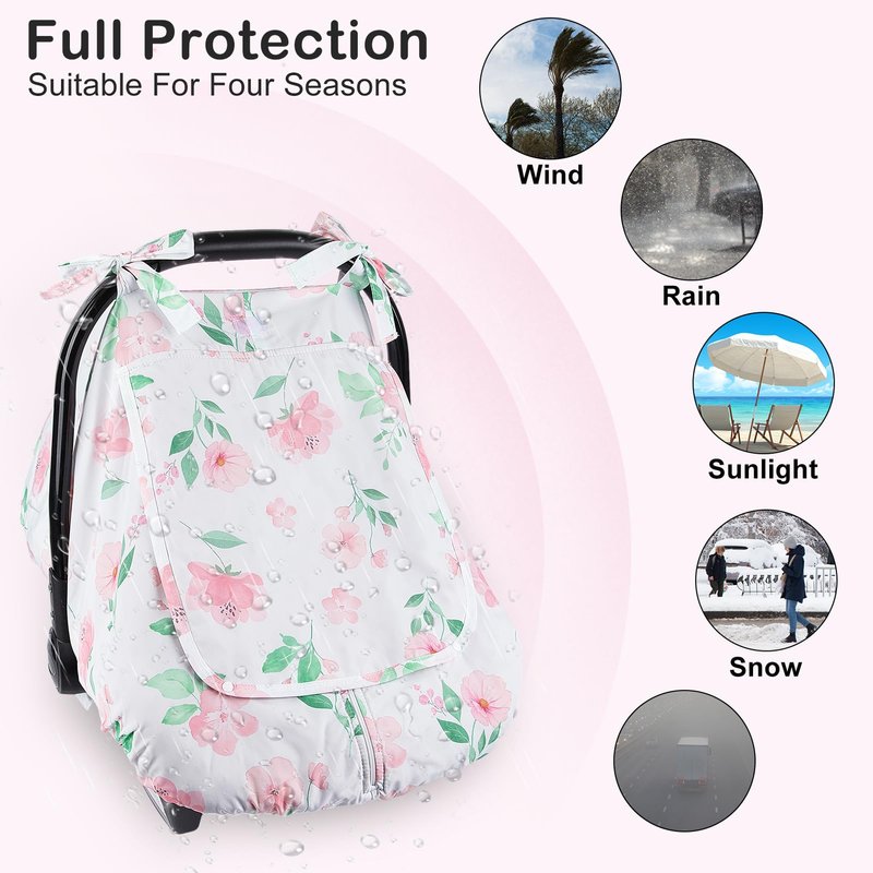 - Perfect Baby Accessory: Maded from waterproof fabric, our baby carseat cover excels in repelling water and blocking wind. The soft and skin-friendly inner is gentle on newborn skin. It has unique printed patterns, a stylish appearance, versatile functionality, and is suitable for all seasons.