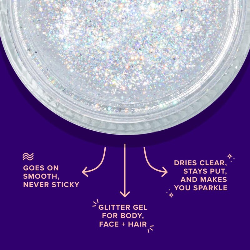- EASY TO USE AND EASY TO REMOVE: Simply swipe a fingertip of our glitter gel anywhere you need a little extra sparkle. We love to use it as a highlighter on the cheekbone, brushed through brows, or almost anywhere on the body-just take care around those precious eyes. No primers or adhesives are needed. Glitter Gel removes easily with makeup removal cloths, baby wipes, or a cotton pad with makeup remover.