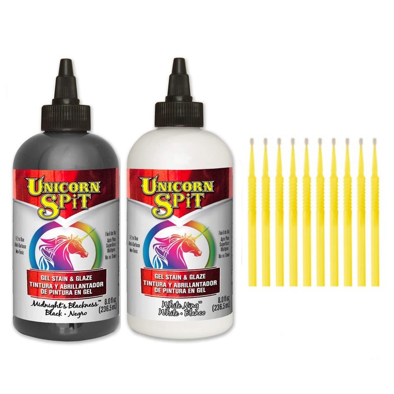 Unicorn SPiT Gel and Glaze Stain Classic Black and White Collection: 8 oz. Bottles with Trebbies Detail Sticks (Midnight's Blackness and White Ning)