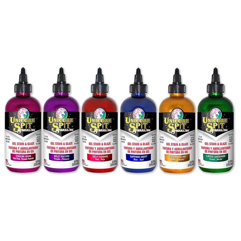 - UNICORN Spit SPARKLING allows anyone to turn ordinary objects into shimmering masterpieces! It creates a sparkling, 3-dimensional effect on wood, glass, metal, fabric, pottery, wicker, concrete and laminate. Ideal for creating new - or - refinishing thousands of projects. Excellent for crafters, makers, hobbyists, DIYers and pros alike!