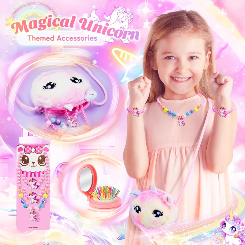 - LET YOUR GIRL SPARKLING SHINE- A well-matched unicorn toy gift set will let your girl standout. With a darling fluffy unicorn purse and unicorn charm bracelet in hand, wear unicorn headband on head which adds a delightful touch of unicorn charm to your girl's appearance. Her friends will be very envious when they see it. These surprise toys for girls are more than just gifts; they're cherished treasures that like a diamond in her memory, that will shine in her heart forever.