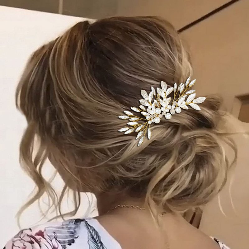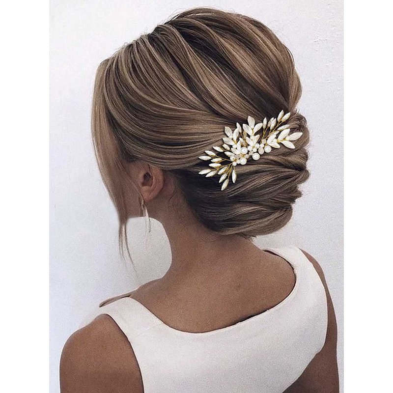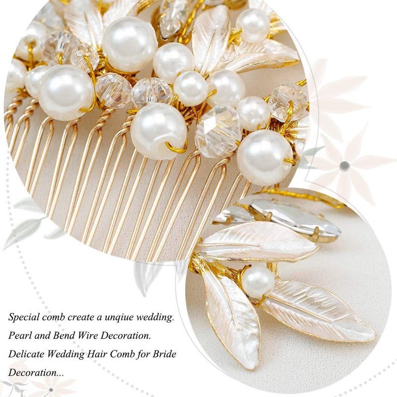 Unicra Bride Wedding Gold Leaf Hair Comb Crtstal Bridal Headpiece Bridesmaids Pearls Hair Accessories for Women and Girls (Gold)