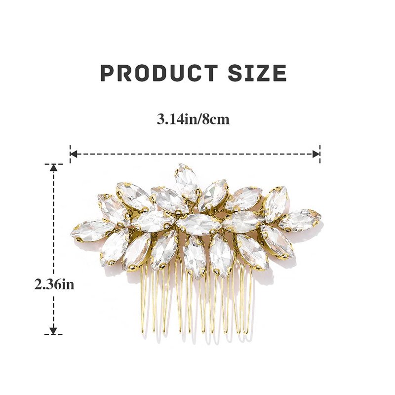 - Handmade hair side comb approx size: free size, Gold bride hair piece in unique design and excellent workmanship, made of crystal & alloy.