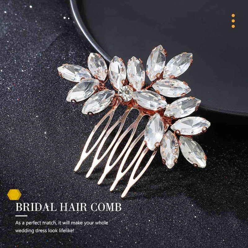 - Rose gold wedding hair comb in creative design and excellent workmanship, made of crystals & alloy.