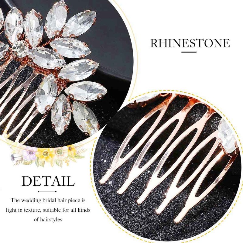 Unicra Rose Gold Rhinestone Bride Hair Comb Bridal Wedding Hair Piece Crystal Hair Accessories for Women and Girls (Rose Gold)