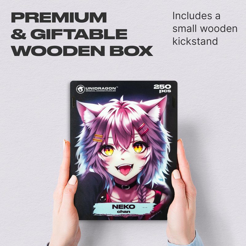 UNIDRAGON Original Wooden Puzzles for Adults - Pop Art Neko Chan 250 Pieces (32 x 23 cm), Beautiful Gift Box, Unique Shape Best Gift for Adults and Children