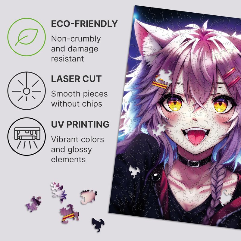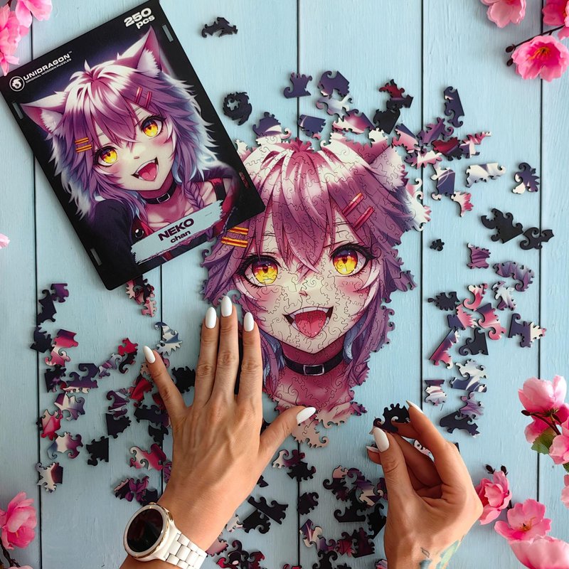 UNIDRAGON Original Wooden Jigsaw Puzzles — Pop Art Anime Neko Chan — 250 Pieces Puzzle Rectangular Shape 12.6x9 Inches This puzzle will make a perfect valentines day gift for him or her