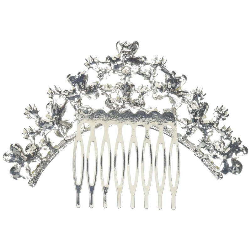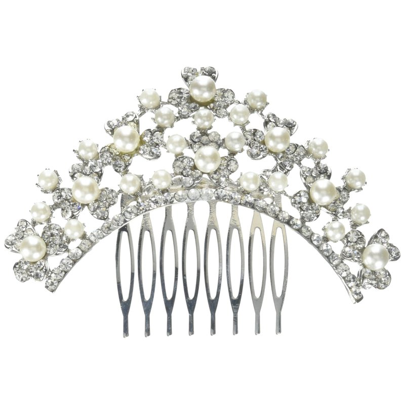 Unik Occasions Pearl and Crystal Clover Cluster Tiara Hair Comb, Silver