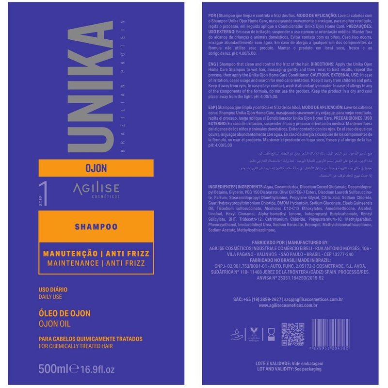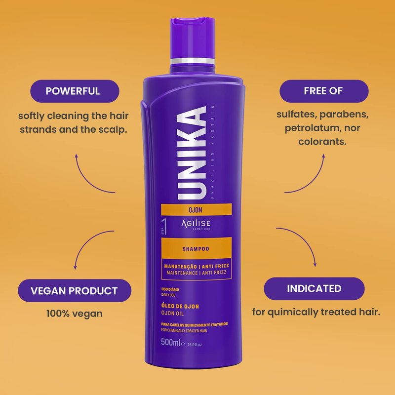 Unika Ojon Home Care Hair Shampoo - Chemically Treated Hair Care, Sulfate Free Shampoo - Vegetal Keratin, Coconut Oil, Ojon Oil, VEGAN -16.9fl.oz/500ml - AGILISE