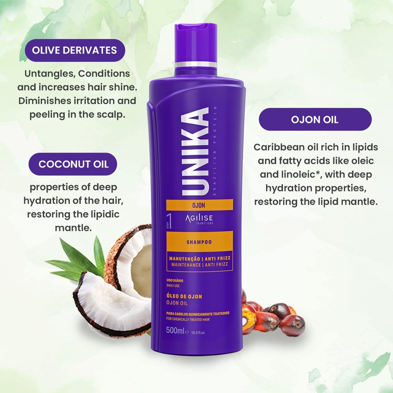 - 【NATURAL ANTI-FRIZZ ACTION】Get a natural anti-frizz action you've been looking for with Unika Ojon Home Care Shampoo. Our formula is free of formaldehyde and features Olive derivatives, Coconut Oil, Ojon Oil, and Vegetal Keratin to provide effective yet gentle straightening.