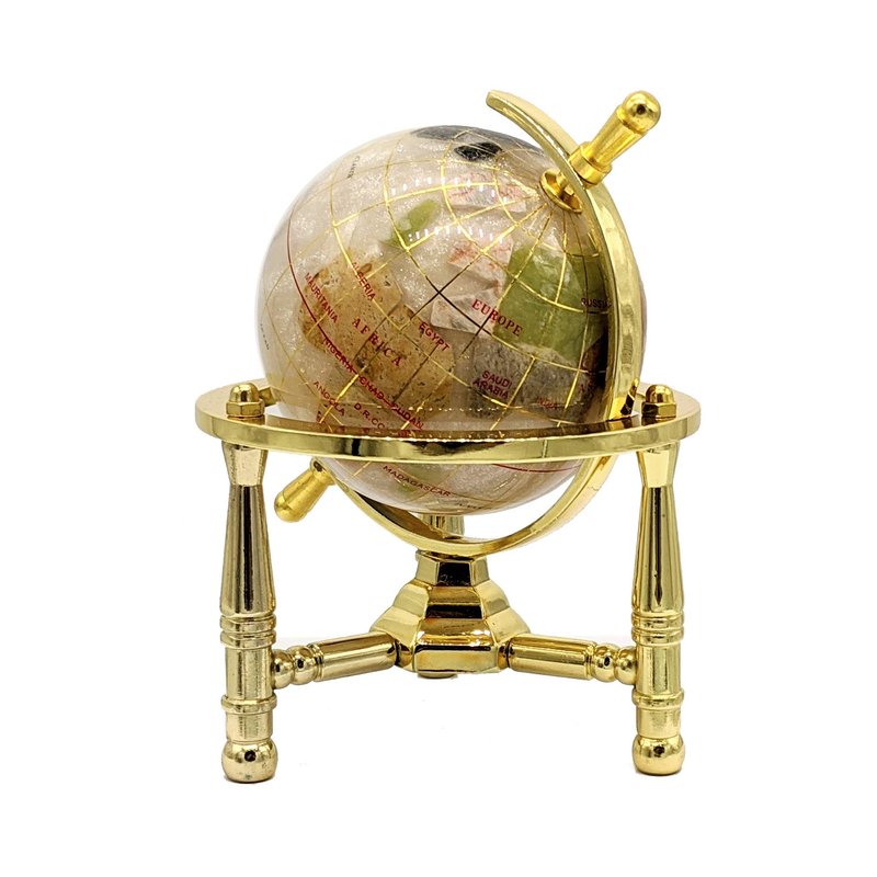 Unique Art 6-Inch Tall Pearl Swirl Ocean Mini Table Top Gemstone World Globe with Gold Tripod
