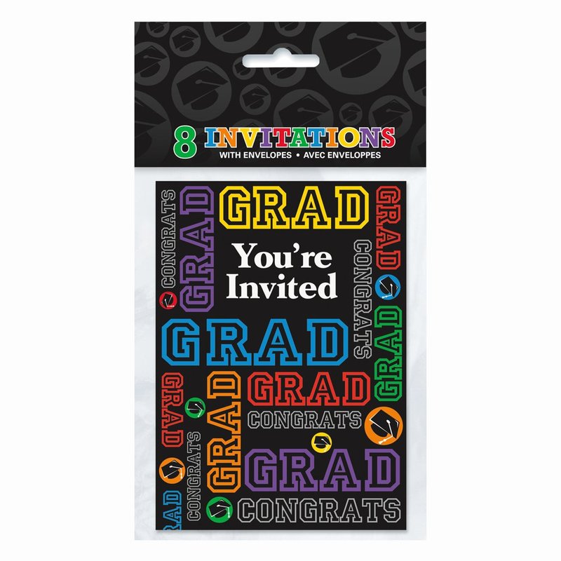 - VIBRANT DESIGN: provide guests with all of the important event details with these invitations that feature vibrant and assorted colors "Grad" and "You're Invited" headlines.
