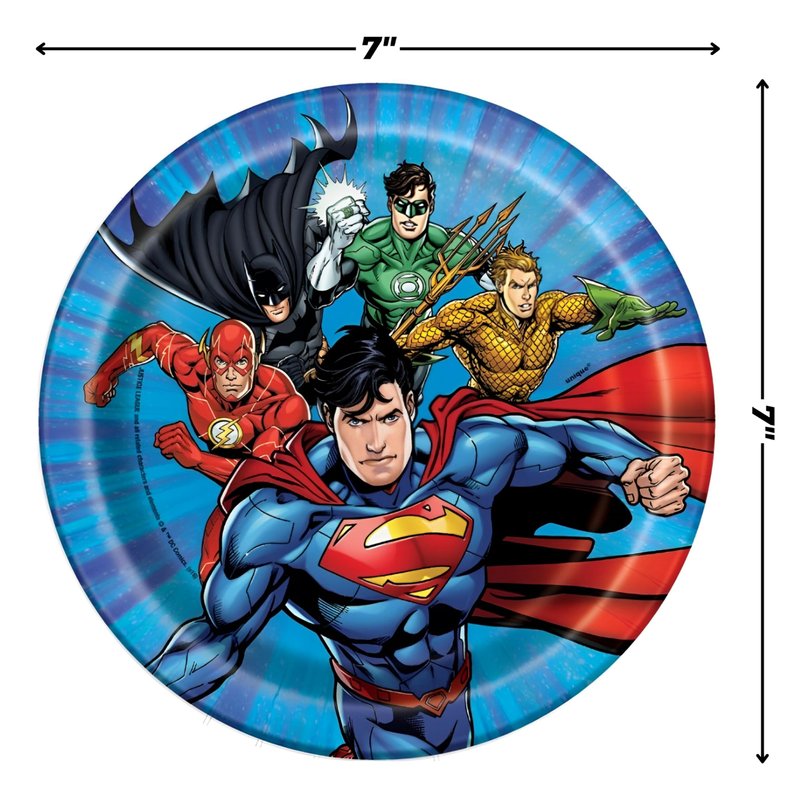 Unique Round Dessert Paper Plates - 7", Justice League, 8 Pcs