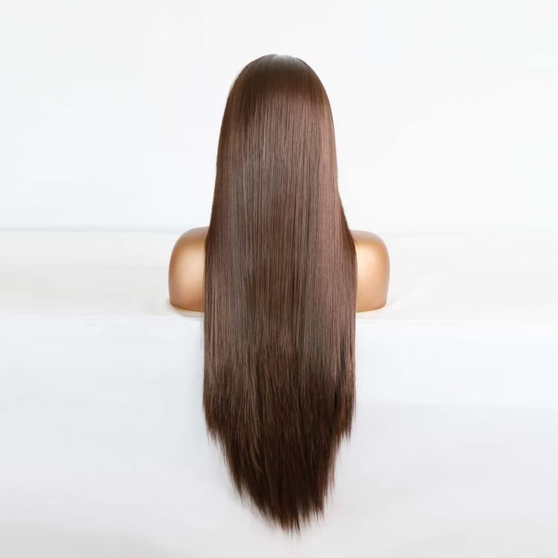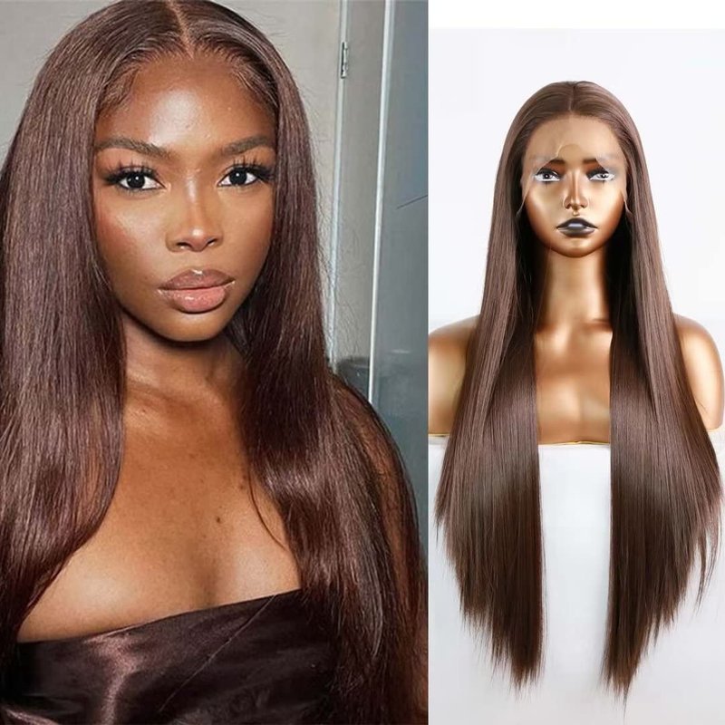 - 1.UNIQUEWIG Dark Brown Synthetic Lace Front Wig. When the wig is straightened, its length is 24 inches.