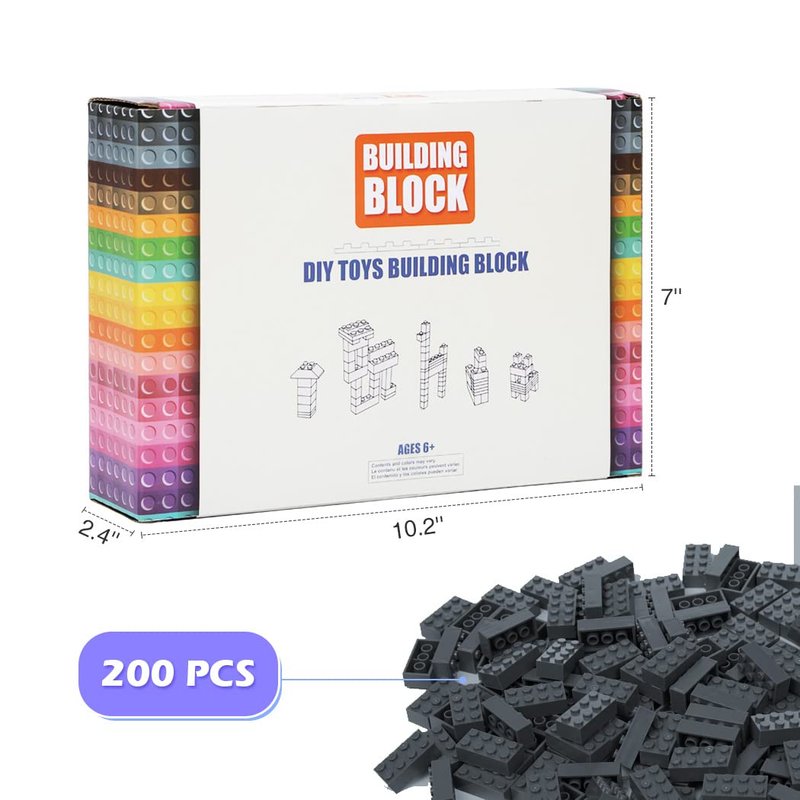 Unirolic Classic Building Bricks, 200 Piece 2x4 Building Blocks STEM Creative Building Toys Compatible with All Major Brands, MOC Building Bricks DIY Play Set for Kids Age 6+(Dark Grey)