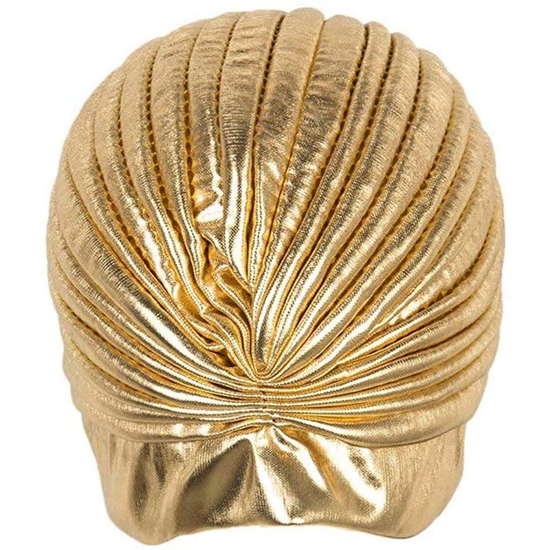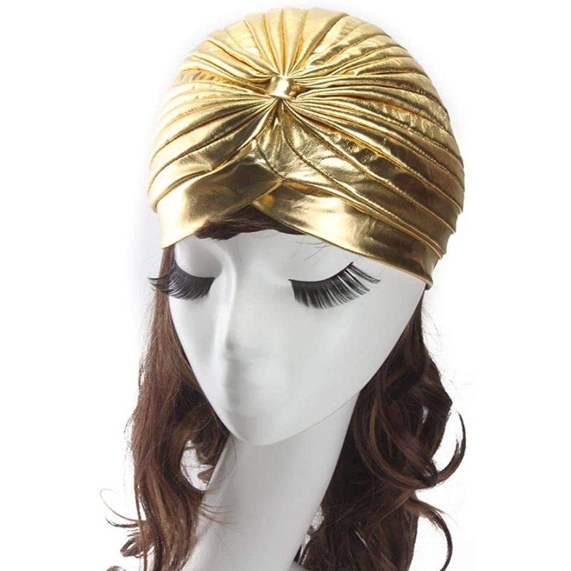 Unisex Turban Hat, Vintage Polyester Pleated Head Wrap Headband Cross Twist Arab Hair Wrap Chemo Turban Headwear Gold