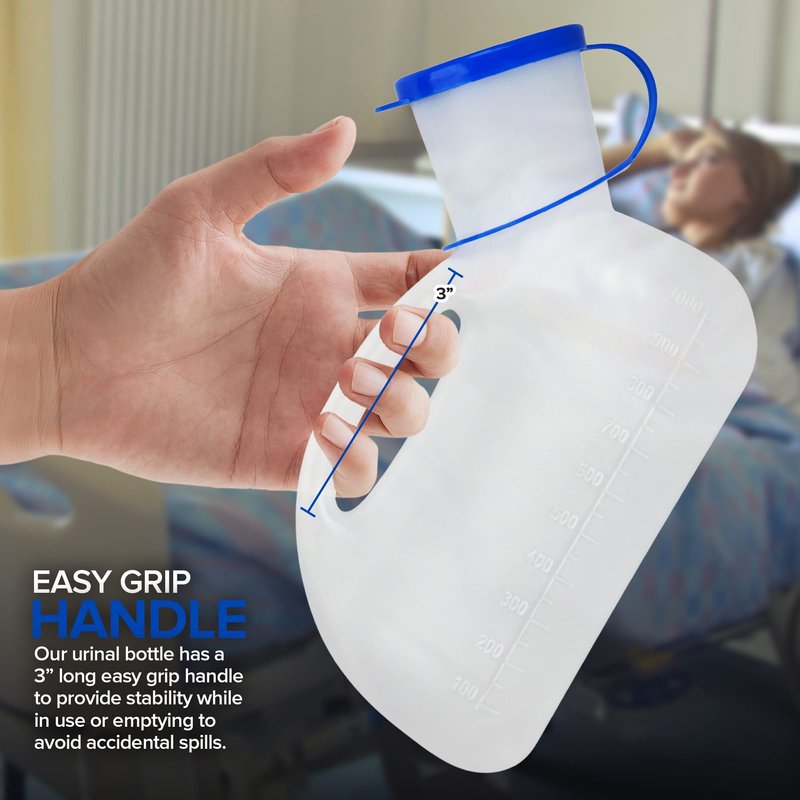 - Easy Grip Handle: Our portable urinal for women and men has a 3” long handle that provides maximum stability to avoid accidental spills. Perfect for the elderly, seniors, homebound/bedridden patients, post-surgery, nursing aids, hospitals,and more!