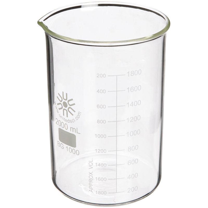 United Scientific™ BG1000-2000 Borosilicate Laboratory Grade Glass Beakers | Griffin Style Low Form Beaker | Graduated with Spout | Designed for Laboratories & Chemistry Classrooms | 2,000mL | 1 Each