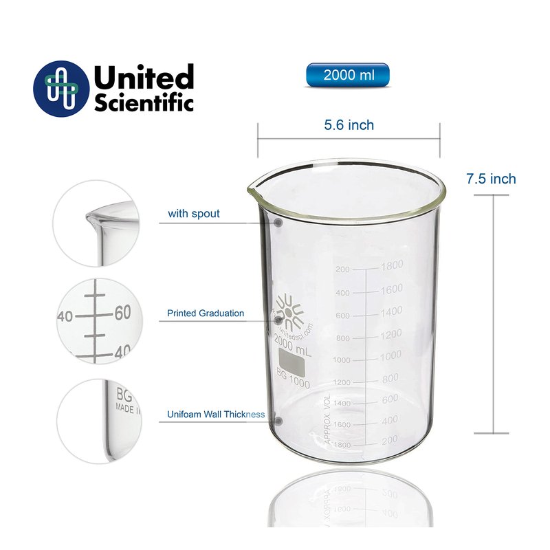 - STATE OF THE ART MANUFACTURING: Every United Scientific beaker is manufactured using state of the art equipment. Every product undergoes various rounds of quality control, and is designed to ensure a smooth, consistent experience for our customers.