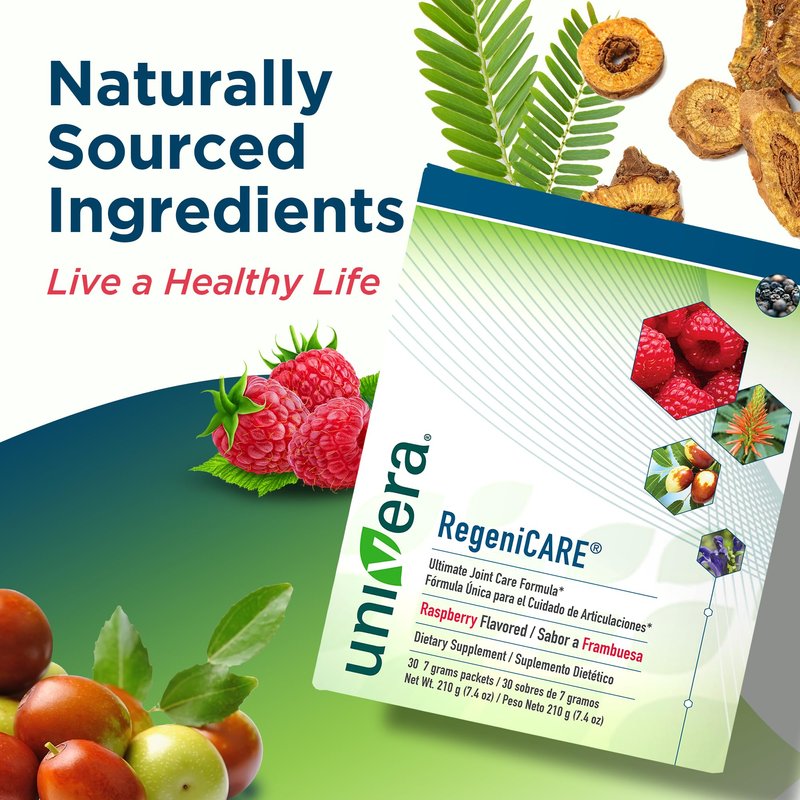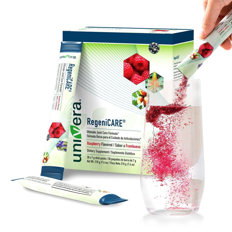 Univera RegeniCARE, Glucosamine, Chondroitin, MSM, Univestin, Joint Health, Joint Support, Easy to Carry, Raspberry Flavor (30ct, 7g Individual Packets)