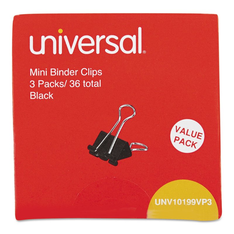 Universal 10199VP3 Mini Binder Clips, 1/4-Inch Capacity, 5/8-Inch Wide, Black, 36/Box