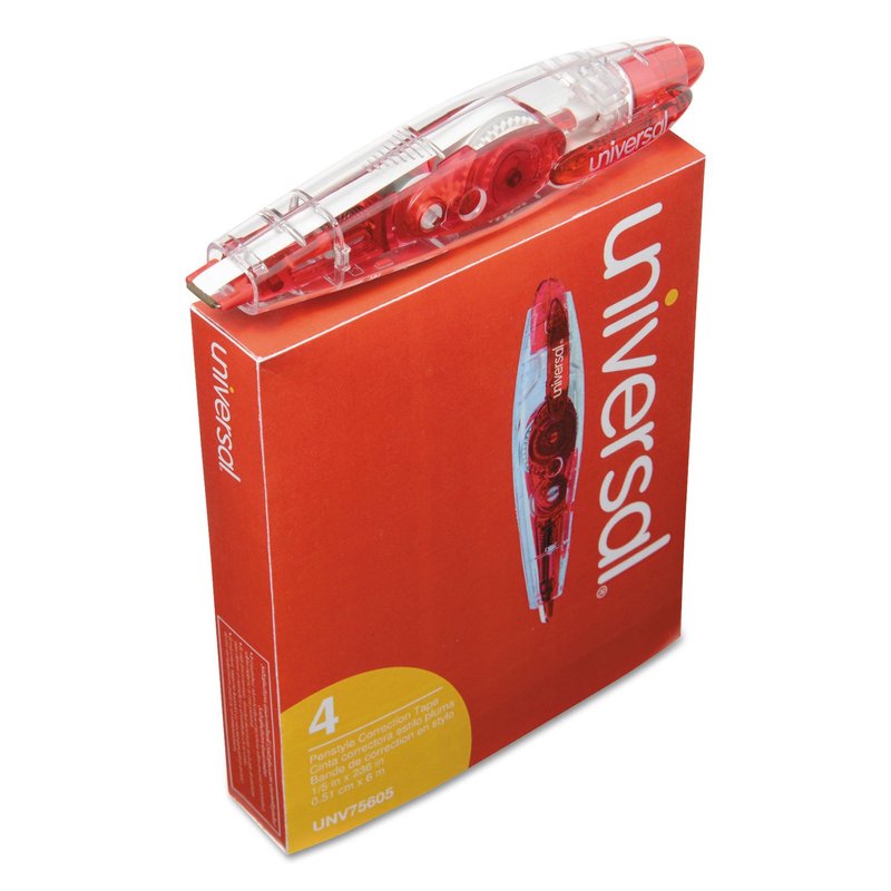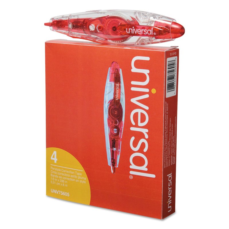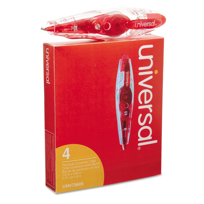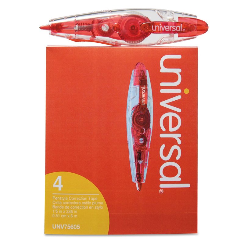 Universal 75605 Retractable Pen Style Correction Tape, 1/5-Inch x 236-Inch , 4/Pack