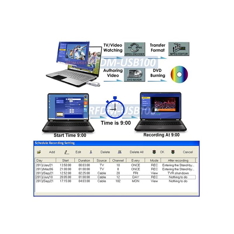 This USB TV tuner also doubles as an advanced PC-based digital TV recorder. The bundled TVR software provides users with DVR functions such as instant recording or scheduled recording on any particular day, daily or weekly.