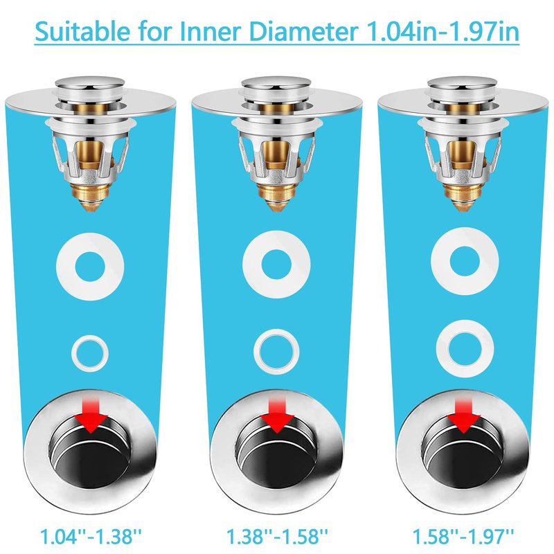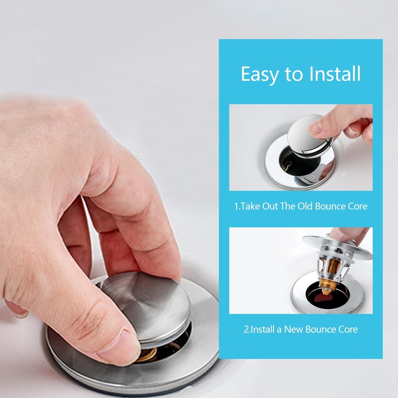 - 💦[ Easy to Install ] No tools are needed, it can be installed easily with bare hands. You just take out the old bounce core and install a new bounce core. Anyone can install the pop-up drain because of its simple structure. If you want to use it for a larger sink hole diameter, you can use the rubber ring we included to increase the inner diameter of the sink plug.