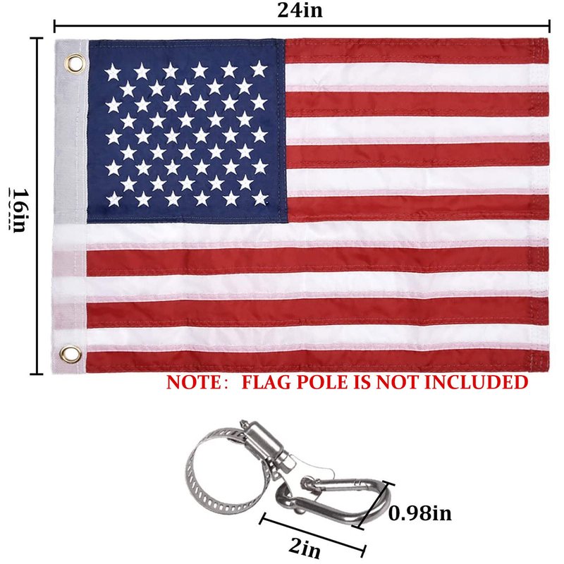 Universal Boat Flag Marine 16"x24" with 4 Boat Flag Pole Kits USA Flag with 50 Embroidered Stars American Boat Flag