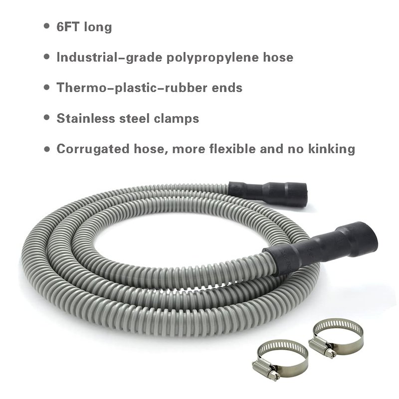 - DURABLE - Made of industrial-grade polypropylene with more durability ,this 6ft long washer drain hose is very sturdy,it's the best choice to replace other brand dishwasher drain hoses.