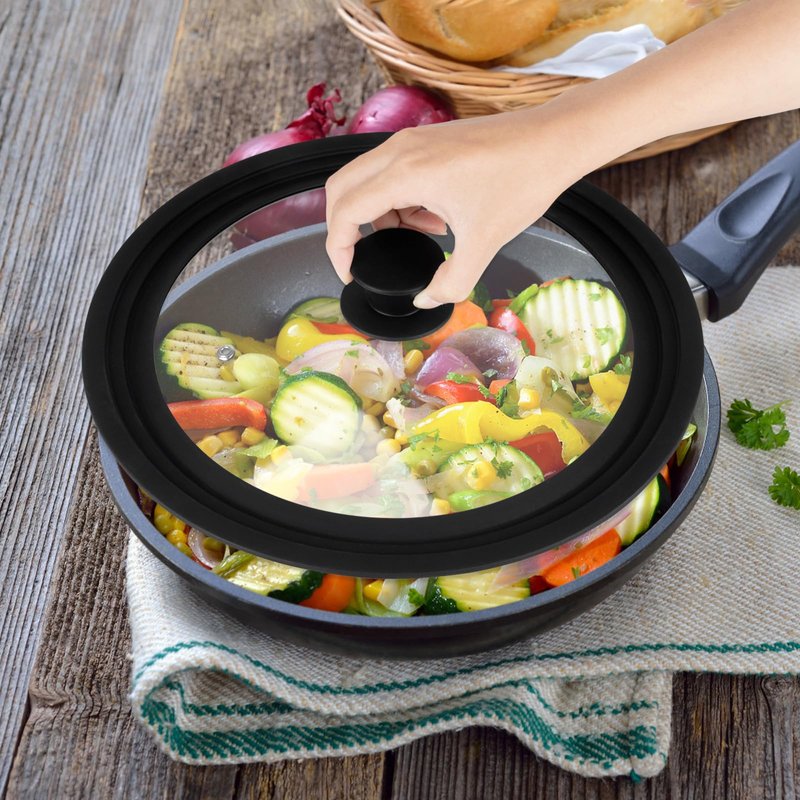 - 【Versatile and Universal】Introducing our Silicone Lids for Pots and Pans, the perfect solution for all your cookware needs. These universal pan lids are designed to fit6", 7", 8", 9", 9.5",10", 11", 12"and 12.5" diameter cookware, including skillets, fry pans, saucepans, stock pots, and woks. Keep your kitchen tidy and free from clutter by using this versatile lid on multiple cookware items.