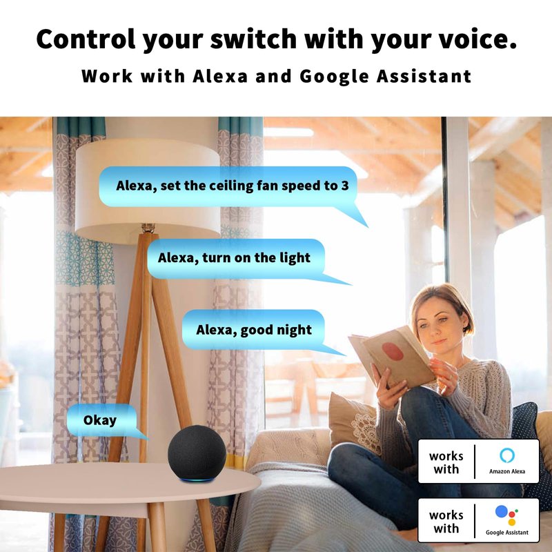 - 【WIFI Voice Control & APP Support】Compatible for Amazon Alexa, Google Assistant, IFTTT, can voice control ceiling fan light; APP Support:Ceiling fan Remote control and receiver for iOS and Android mobile apps. Sync Status - Real-time device status provided to the app, Download and Open “Smart Life” Mobile App. ❤NOTE: when you choose the router connected to the mobile app, please select the 2.4G network. Don't choose 5G or 5.8G network. Otherwise, the device may not be able to connect to the APP.