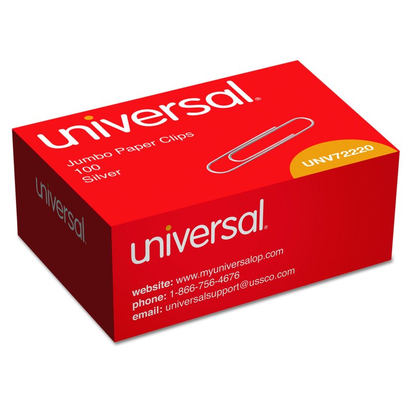 Universal Smooth Paper Clips Wire Jumbo Silver 100/Box, 10 Boxes/Pack (UNV72220)