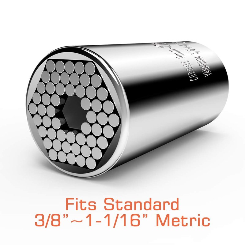 - ADVANCED DESIGN - Universal socket can self-adjust to any size from standard 3/8" to 1-1/16" and metric 9mm to 27mm.