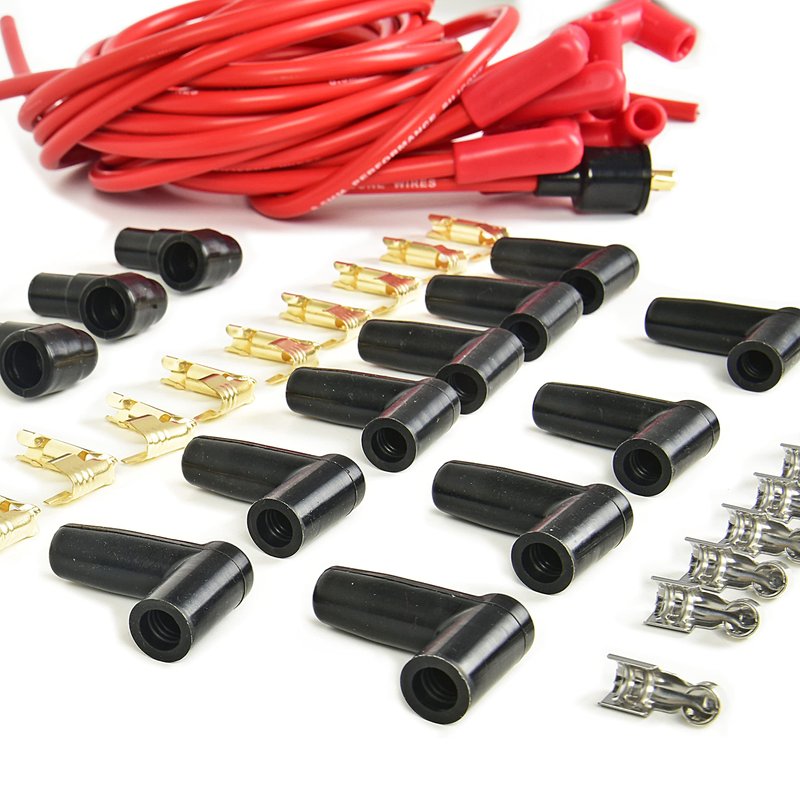Universal Spark Plug Wire Set 8.5mm with Red Silicone Jacket and 90 Degree Boots Replaces Accel 4041
