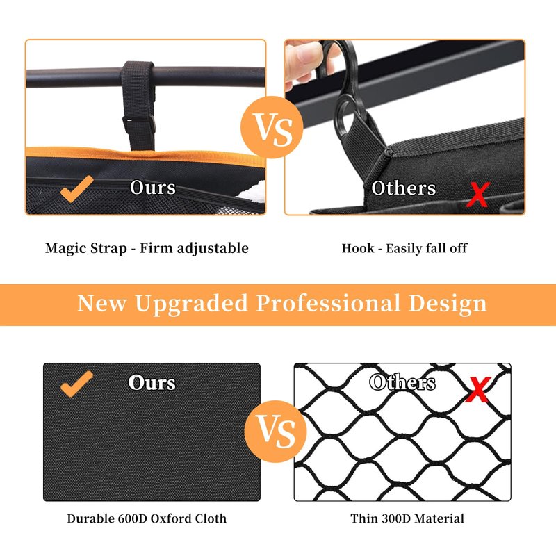 Compatible with WONDERFOLD all w-series models (W4 Luxe, W4 Elite, W4 Original, W2 Luxe, W2 Elite, W2 Original). Provides ample storage space for your belongings and easy access. Holds lots of toys, towels, water bottles or anything else you need to carry around. Helps your station wagon to be cleaner and more tidy.
