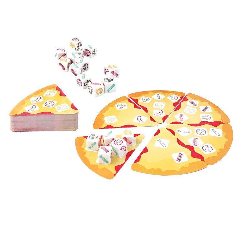 - Complete Contents: Includes 10 Pizza Toppings Dice, 40 Pizza Slice Cards, and Rules for a fully satisfying gaming experience.