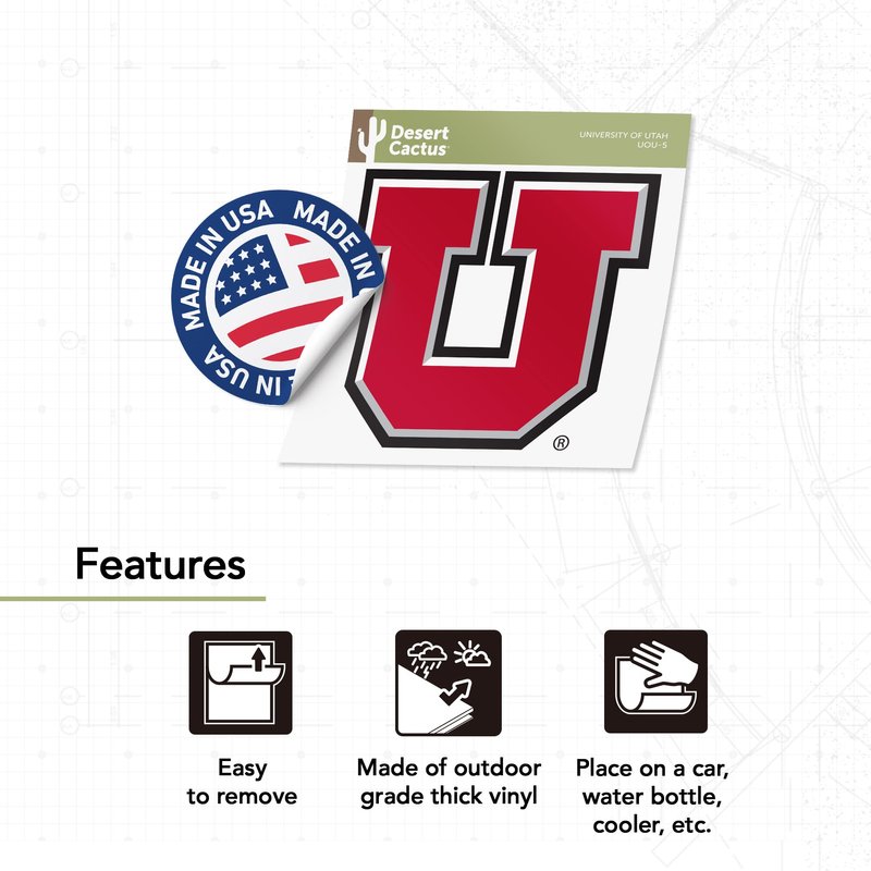 University of Utah Sticker U of Utes Vinyl Decal Laptop Water Bottle Car Scrapbook Sticker (IND 5)