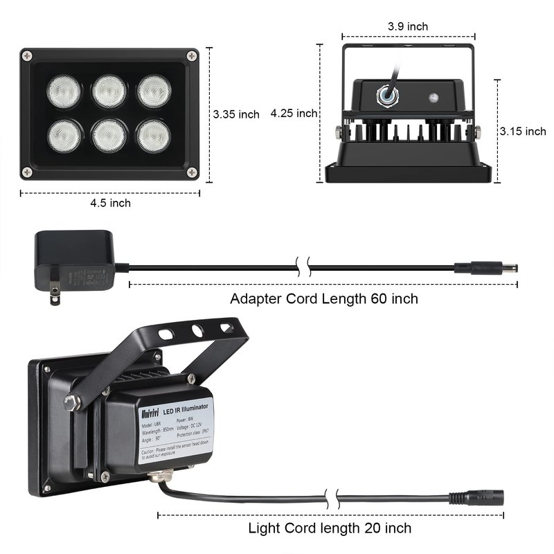 With 90 degree wider angle, this high quality IR infrared illuminator is a good choice to installed with wide angle IP cameras, CCTV camera and improve the quality of night vision image.