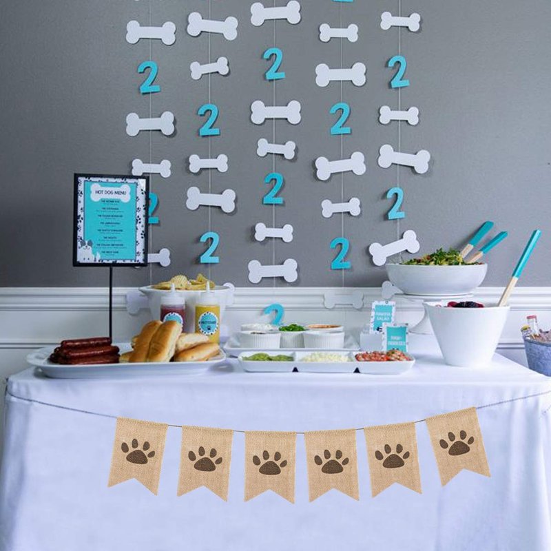 Uniwish Dog Paw Print Banner Puppy Animal Theme Birthday Party Decorations, Rustic Burlap Bunting Pet Party Supplies Garland Photo Props