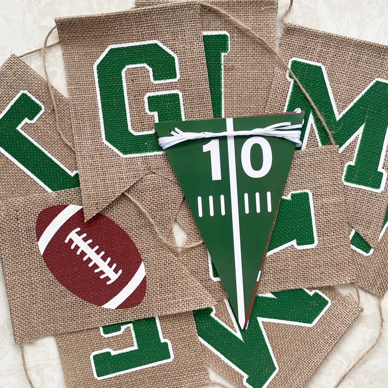 - Durable & Reusable: The game time banner is made of natural burlap, each flag is 5" x 7"; the football theme garland is made of premium cardstock, each pennant is 5.5"x7.8", durable and nice combination for you to year after year use