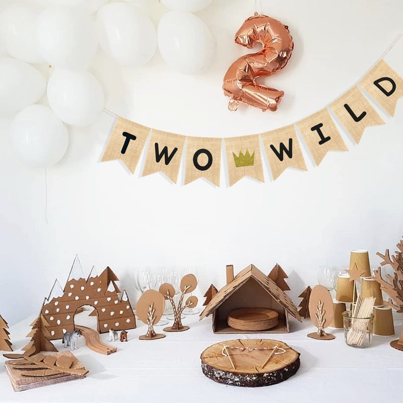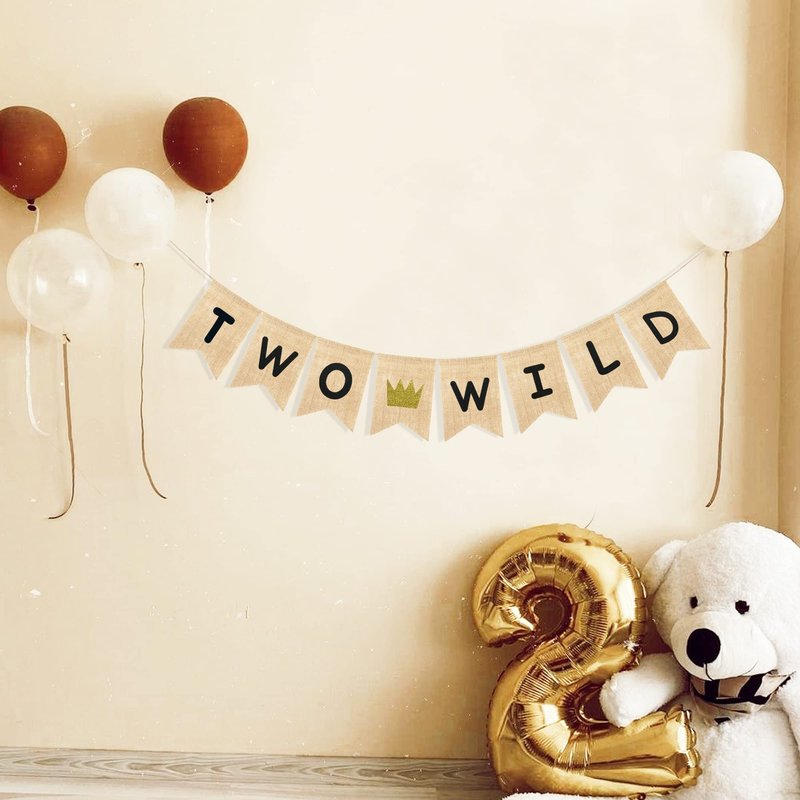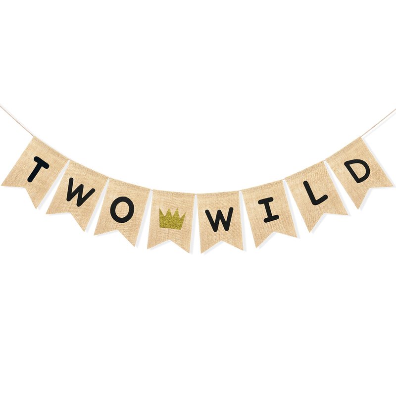- Package Included - 1pc burlap two wild banner in black letters and glitter crown, simple design but cute enough, a must have bunting for your baby two years old birthday party