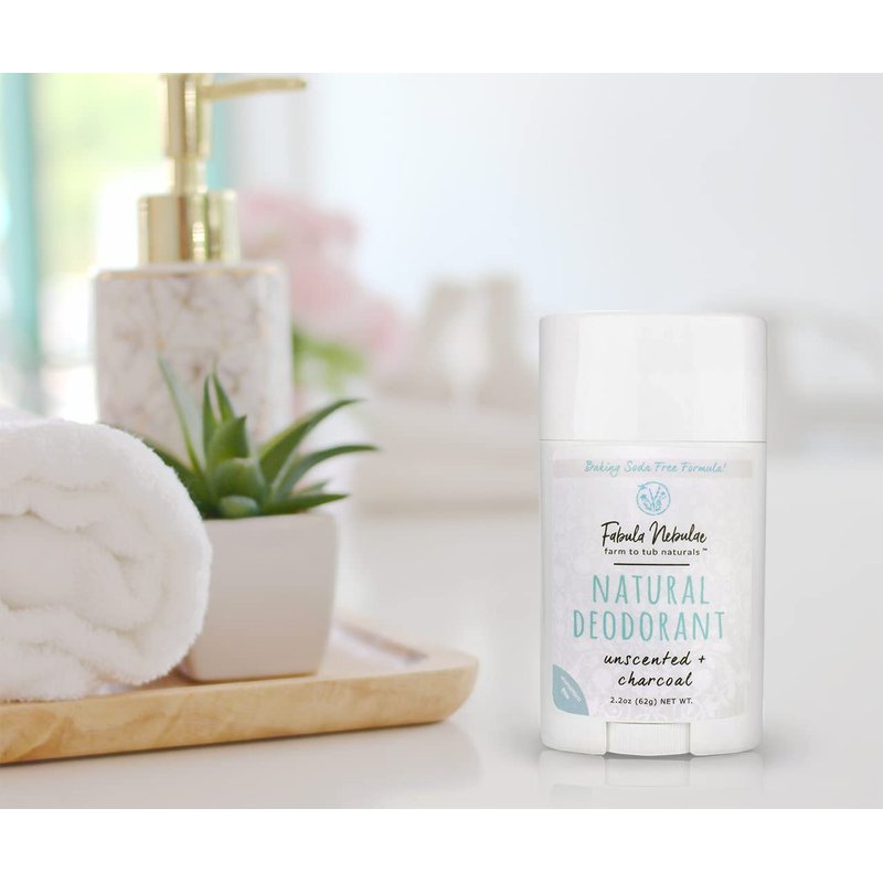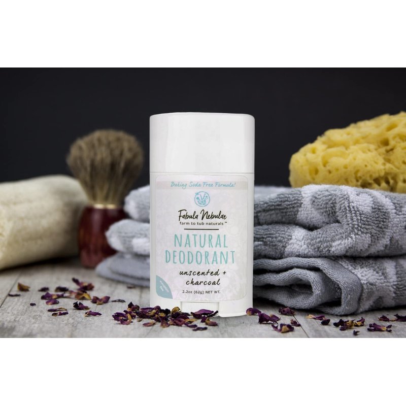 Unscented Charcoal Natural Deodorant for Men & Women, Organic, Aluminum Free, Baking Soda Free Deodorant for Sensitive Skin, Made with Magnesium and Charcoal, Long Lasting, 2.2oz, by Fabula Nebulae