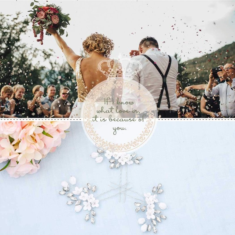 - Silver prom hair pins are made of A wire, rhinestones and withe flowers.There are different 3 pins (2 PCS to the right + 1 PCS to the left).